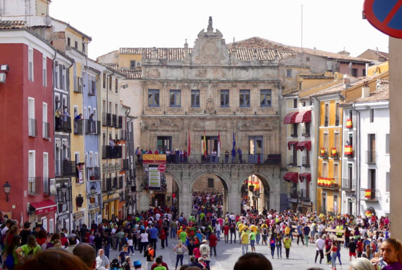 Aan het Plaza Mayor ligt ook het fraaie gemeentehuis uit 1713, die we slechts van een afstand konden fotograferen. Cuenca heeft een mooi historisch centrum waar je via trappen stijgt en daalt. We hebben nog wat rondgewandeld door het historisch centrum en zijn weer afgedaald naar de camper. Omdat we inmiddels het programma kenden, met als sluitstuk het bal op het Plaza Mayor om 24.00 uur, leek het ons verstandiger om een minder luidruchtige overnachtingsplek te zoeken. Dus zijn we via een snelweg 71 km verder gereden naar het dorp Ucles waar we op de camperplaats staan. Er is hier een groot klooster bij het dorp die we morgen gaan bezoeken.