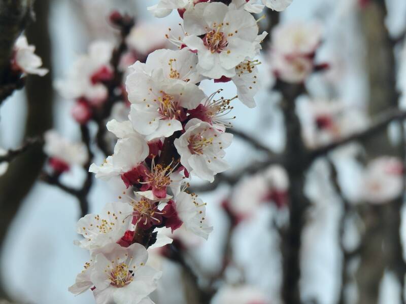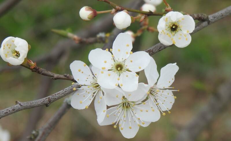 Er staan sleedoorns in bloei. Vroeger heb ik van de vruchten hiervan, sleepruimen, sloa gin gemaakt