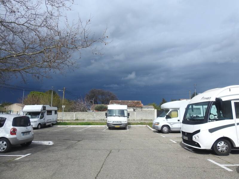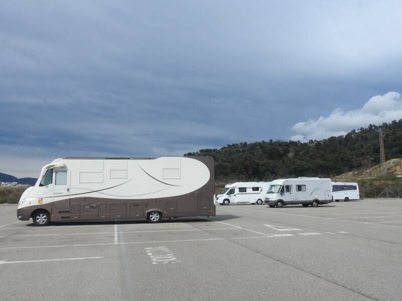 Zoals we gewend waren op de parking Gran Jonquera was het ’s nachts rustig, ondanks de vele campers die er stonden. ’s Morgens om een uur of 6 viel er een buitje, de rest van de dag bleef het droog.