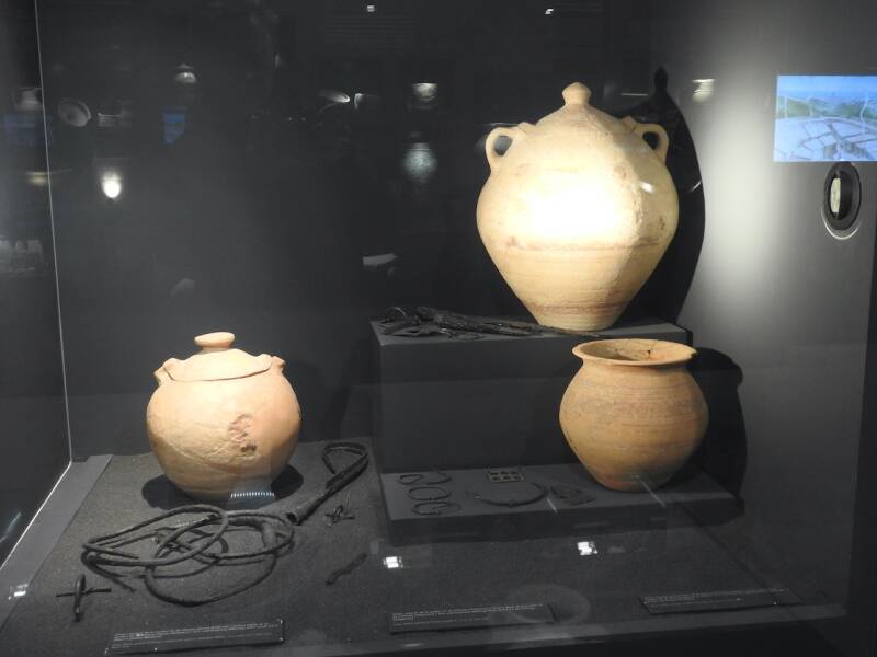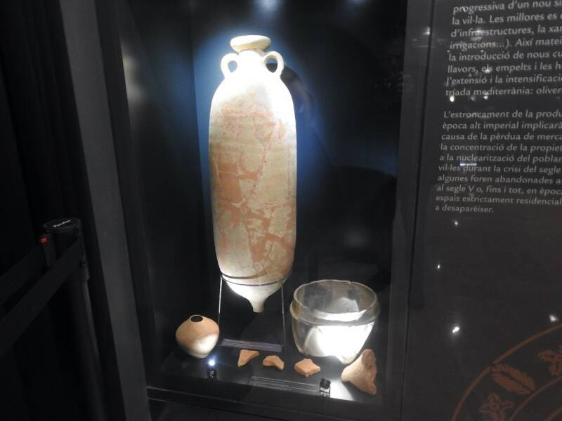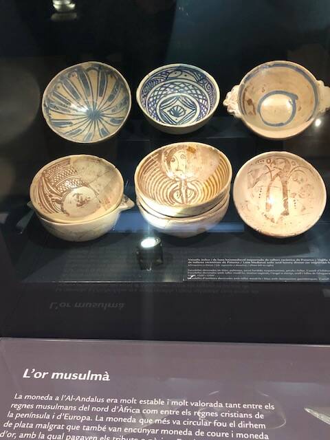 We zijn vanmiddag naar het kleine museum Les terres de L’Ebre geweest. Er waren in vitrines allerlei archeologische vondsten uitgestald zodat je een beeld kreeg van de prehistorie en welke volkeren er geleefd hadden in achtereenvolgens grotten, gefortificeerde heuvels tot in de huidige dorpen. Aardig om zo een indruk te krijgen, echt spectaculaire vondsten ontbraken. Zo hebben we bv geen gouden helm gezien……