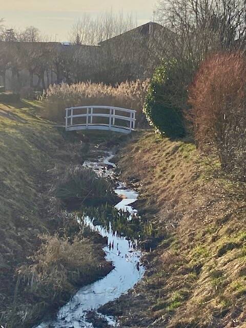 In Bulgneville is bij de cp een klein meertje. Achter onze camper is een leuk bruggetje over een beekje.