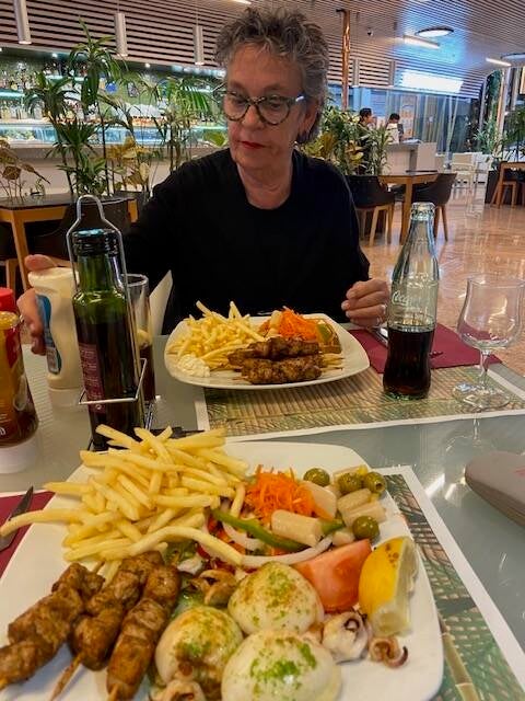 In het winkelcentrum hebben we geluncht, o.a. sepia..