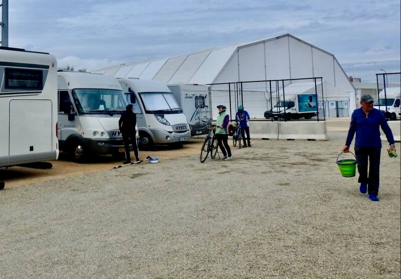 Op de cp hier kunnen 12 campers staan. Er is een grote parking naast zodat we nu met veel meer campers staan. En voor het eerst staan we nu tussen Spaanse campers. Een minpunt is wel dat de cp tussen de snelweg en een spoorlijn ligt. Overdag hebben we daar geen last van, hopelijk is de Ohropax vannacht onze vriend.