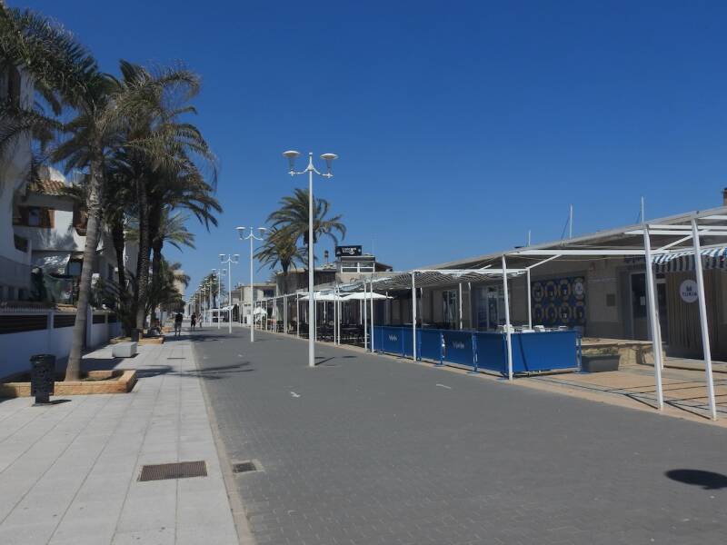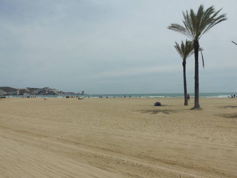 Vanmiddag zijn we over de boulevard richting Sagunt gefietst om te kijken of we een plekje konden vinden om eventueel mogen vrij te gaan staan. Die was er wel , een kleine parking pal aan zee in Pucol echter ook daar kon je niet buiten zitten en het strand bestaat uit rotsplaten, voor de camper zitten leek wat moeilijk. Misschien dat we daar morgen nog even gaan kijken, zonder al te veel hoop, het was er nu al druk met campers en geparkeerde auto’s en morgen op zaterdag zal het eerder nog drukker zijn. Op het strand was het ook al aardig druk, de boulevard was daarentegen nog rustig.