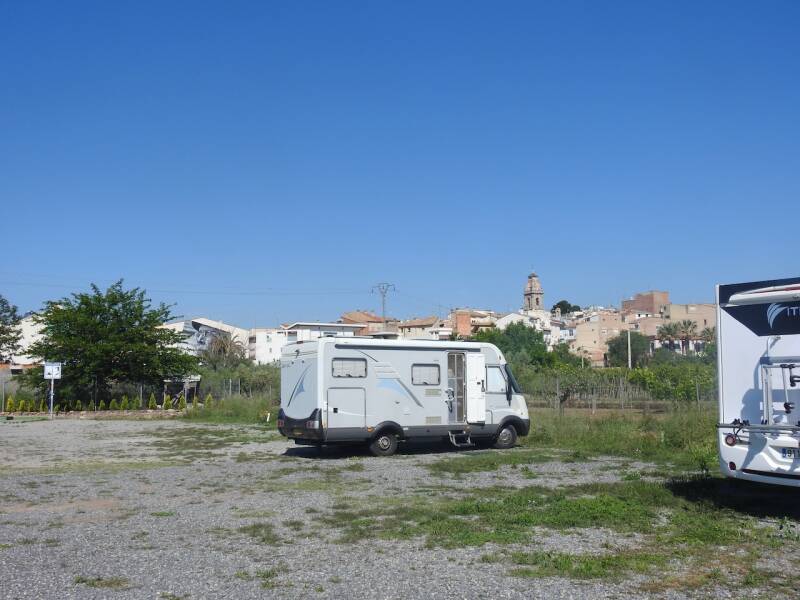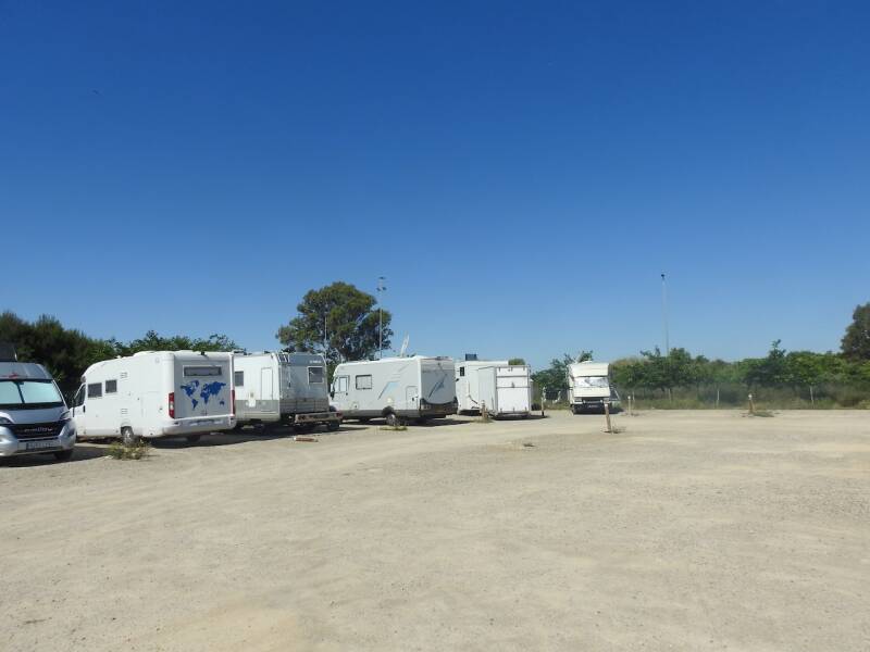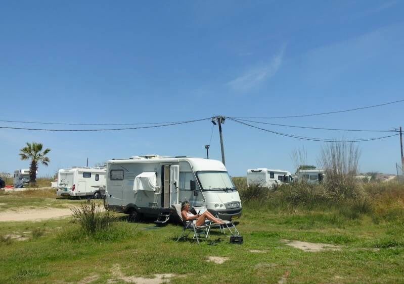 Er is naast de officiële cp een groot grasveld met bomen, daar heb we vorig jaar nog gestaan, we lazen dat het nu verboden is sinds 3 dagen om daar nog vrij te staan, De reden dat we hier naar toe zijn gereden is om van de service gebruik te maken en dat er dichtbij zowel een lavanderia is als een Consum supermarkt . Toen we daar vanmorgen daar naar toe liepen zagen we tot onze verbazing dat er een 15-tal campers op het grasveld stonden. Het bleek dat je er nog wel mocht staan echter niet op het gebied onder de bomen. Het bleek dat diegene die in het Engels de review had geplaatst de tekst verkeerd had geïnterpreteerd. Echter zowel hier op de cp als op het grasveld is het verboden om buiten te zitten, we zijn dus gewoon blijven staan.