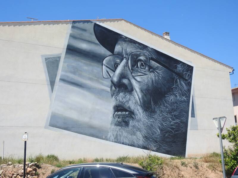 Vanmorgen zijn we niet eens langs de de vrije plaats gereden die ik gisteren had gezien maar 40 km het binnenland in naar Geldo. Geldo hadden we op de heenweg al willen bezoeken maar toen was het weer te slecht. Daar is nu geen spraken van en binnen een half uur stonden we op de mooi gelegen cp die, mede omdat het niet druk is en lekker landelijk gelegen is een weldadige rust uitstraalt. Omgeven door olijf- en fruitbomen , onder het genot van zingende vogels en fladderende vlinders , kijken we uit op het dorpje Geldo die een zekere faam heeft verworven omdat er veel muurschilderingen zijn. Die streetart is dan ook de reden dat we hier naar toe gereden zijn, de mooie omgeving is dan mooi mee genomen. Hier is werk te zien van lokale en (inter)nationale kunstenaars.
