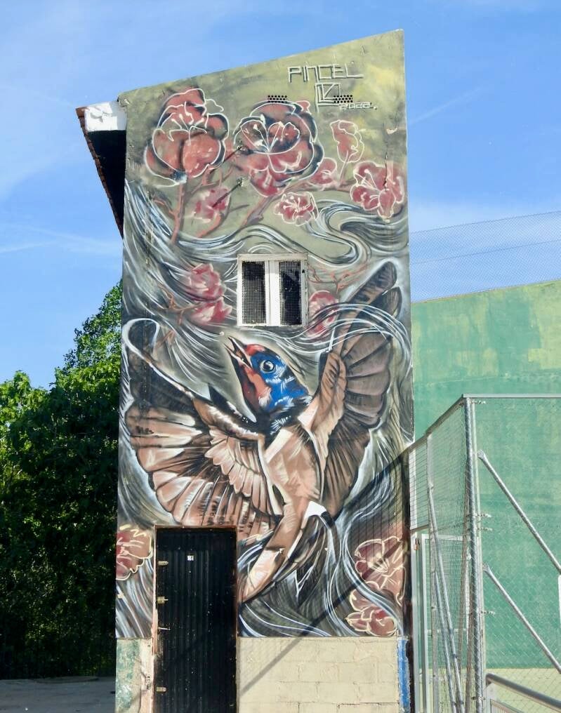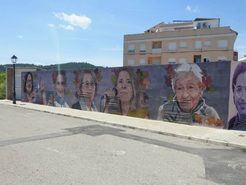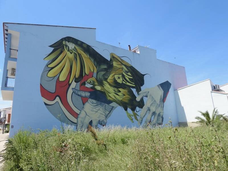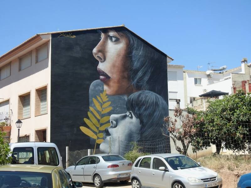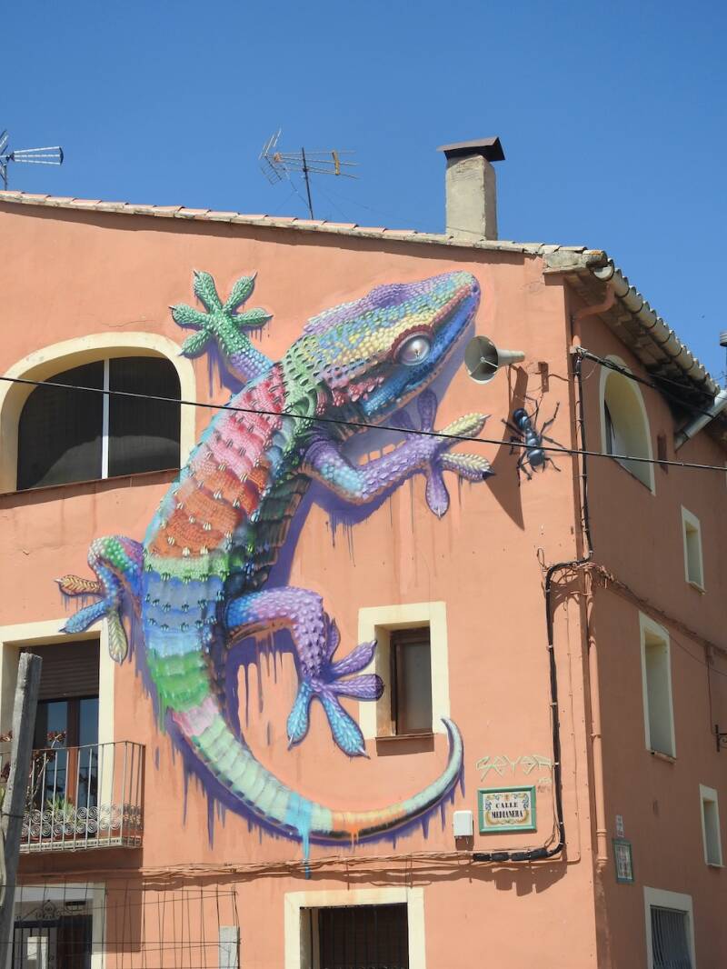 We zijn aan het begin van de middag het dorp ingewandeld, vrijwel meteen zie je 3 muurschilderingen op een rij op diverse gebouwen. Die zien er veelbelovend uit, we hebben nog meerdere schilderingen gezien en eerlijk gezegd viel het niveau ons wat tegen. Dat zal er deels mee te maken hebben omdat we verwend zijn door de muurschilderingen die we 6 jaar geleden in Fanzara hebben gezien, daarvan waren we nogal onder de indruk. Maar er zaten hier best mooie exemplaren bij en we vielen met de neus in de culinaire boter, er is dit weekend een weekend Gastro Geldo, ‘Feria de la Gastronomía, Artesanía y Comercio Local’. Er zijn oa. wijnproeverijen, bieren, honing en kaas te koop, allemaal van locale producenten. Ook staan er een paar foodtrucks en zijn er wat kunstnijverheidskraampjes We hebben alleen maar over het kleine marktje gelopen en (nog) niets geproefd, dat komt morgen wel.