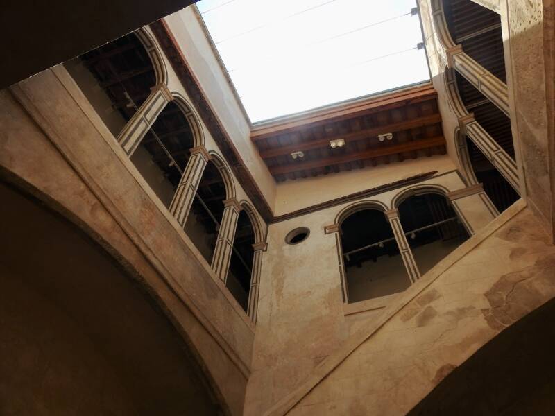 We zijn in het Palacio de los Duques de Medinaceli geweest, met nog originele elementen uit de 15e eeuw. Er zijn duidelijk Moorse invloeden te zien evenals gotische. Er was een tentoonstelling te zien over de geschiedenis van sleutels , wat we begrepen waren de eerste sleutels ongeveer 6000 jaar voor de jaartelling in Egypte in gebruik en zagen er uit als tandenborstels gemaakt van hout, Ze waren zwaar en niet erg duurzaam, maar ze hadden de techniek van vallende pinnen om de beweging van de veiligheidsgrendel te controleren. Het gebouw was eenvoudig maar was wat verprutst omdat er houten plafonds in waren geplaatst. Vanavond is er in het gebouw een wijn en oesteravond , entrée €10,-, mij leek dat wel wat.