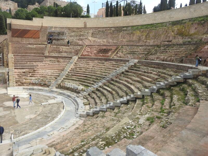 Het theater ligt op een heuvel en is pas in 1988 ontdekt. Tijdens werkzaamheden bij de ruïnes van de Santa Maria la Vieja kerk stuitte men bij toeval op het ruim 2000 jaar oude theater., gebouw rond de jaartelling door keizer Augustus. Zo weten we nu dat het theater een capaciteit had van rond 6.000 bezoekers. En dat, zoals gebruikelijk in die tijd, de halfronde cirkel was opgedeeld in drie horizontale lagen. Deze dienden om een afscheiding te vormen tussen de verschillende sociale lagen van de bevolking, verschil moet er zijn is kennelijk van alle tijden. Hoewel we mooiere theaters hebben gezien, is het flauw om te vergelijken , het is in Spanje een van de indrukwekkendste Romeinse theaters.