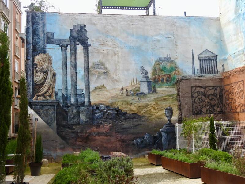 Vlakbij het gemeentehuis was het Romeinse Theater dat toegankelijk was via het museum. Via twee ondergrondse tunnels kom je uiteindelijk naar het theater. Je komt langs 2 zalen met Romeinse gebruiksvoorwerpen, vooral veel foto’s en tekeningen en beelden, althans wat er van over is. Het geheel geeft een indruk van zowel de geschiedenis van het theater, de kerk en het paleis, we hebben slechts vluchtig die foto’s bekeken.