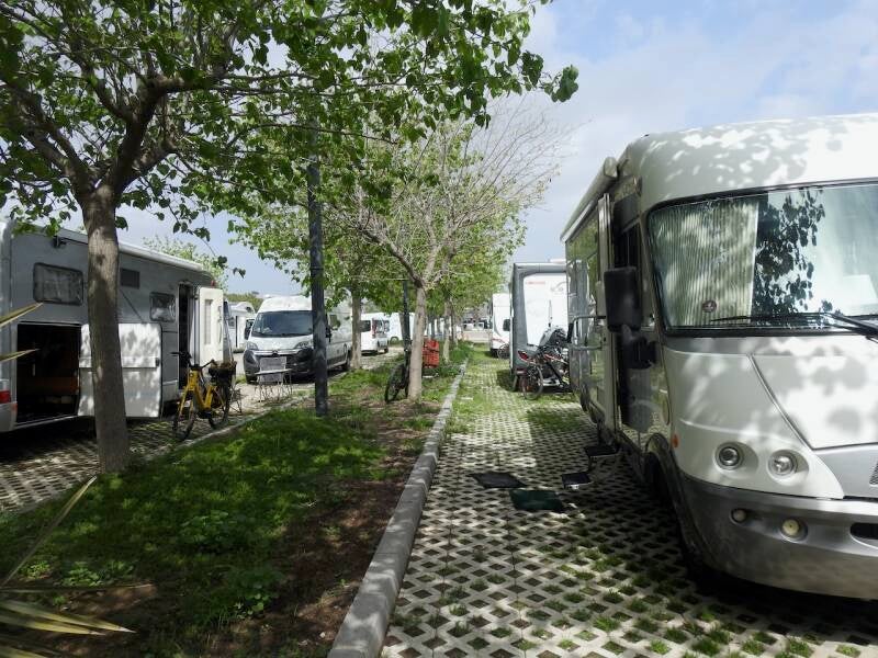 Het kan soms merkwaardig zijn met gevoelens die je hebt als je die relativeert en volgens een soort van Cruyffiaanse filosofie van voors en tegens, zelfs een negatief gevoel kunt omzetten in iets positiefs. We hebben het nu over de cp in Murcia. We hebben hier al vaak gestaan, vorig jaar zelfs 2x in een paar weken tijds. En dat toen we hier voor de eerste keer kwamen we een zekere weerstand voelden tegen deze plek, wat heet we vonden het vreselijk. Dat kwam omdat we alleen een hele volle cp zagen met overwinteraars die er soms maanden stonden alsof het een camping was. Echter, toen we de voordelen ontdekten van deze plek, dicht bij supermarkten, wasserette, restaurantjes en niet ver lopen van de tram die naar het centrum van Murcia gaat, zijn we dit zowaar een leuke plek gaan vinden. Ook omdat we er vaak wel bekenden treffen. De keren dat we hier hebben gestaan hebben we altijd gunstige plekjes kunnen vinden, dat speelt ook een rol