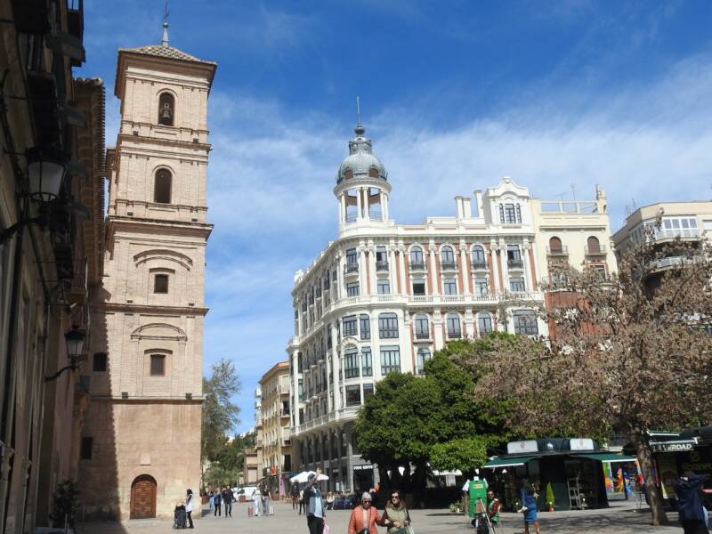 We zijn in de loop van de morgen per tram naar Murcia gegaan, in een minuut of 20 ben je voor €1,40 pp in het centrum. Wat meteen opvalt in Murcia is dat deze stad meer grandeur heeft dan bv Cartagena. Mooie herenhuizen, leuke pleinen en een aantal kerken.