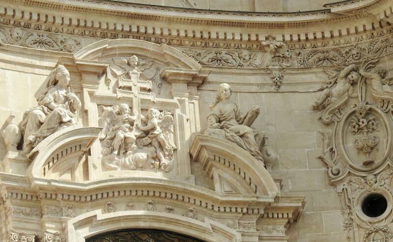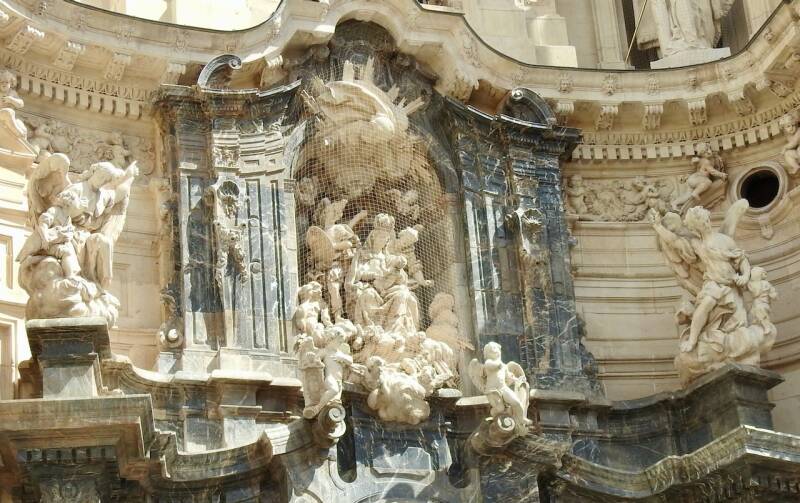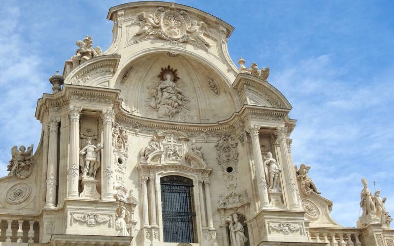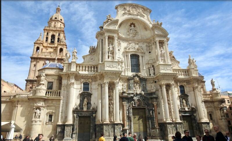 De schitterende barokke voorgevel van de kathedraal van Murcia