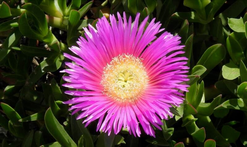 Bloeiende vetplant, kwamen we ook regelmatig in Noord Marokko tegen.