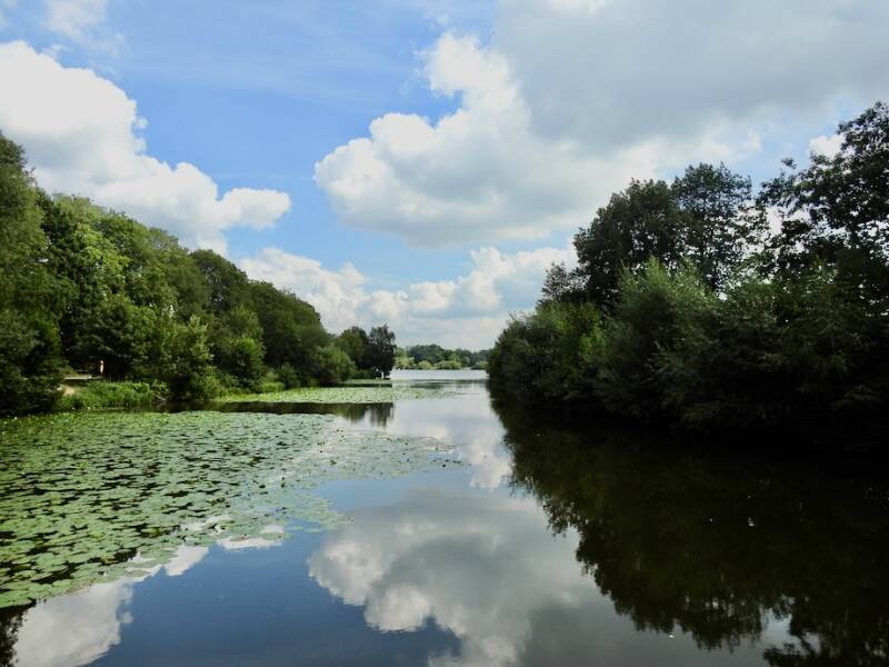 Vanmorgen eerst langs de Aldi in Hagen gereden om wat dingen te kopen die je in Nederland niet kunt krijgen wat bij ons dan neer komt op delicatessen en bepaalde wijnen. Toen was het nog maar 30 km naar Ibbenbüren waar we bij een meer, de Aasee, op een cp staan. Dat viel in eerste instantie nogal tegen, geen meer te zien, oftewel kein Seeblick.