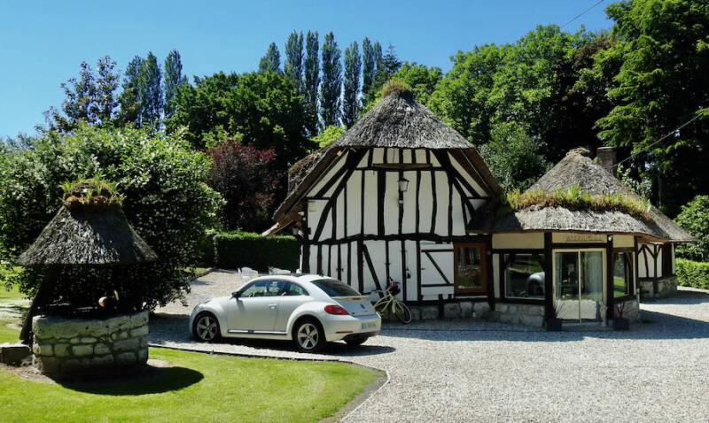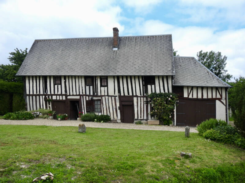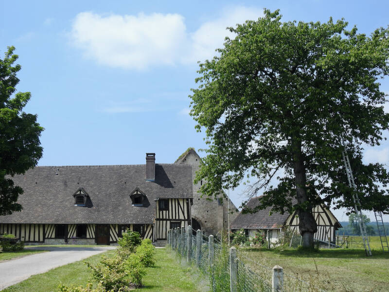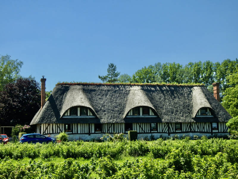 We staan hier aan de Seine in een landelijke omgeving met wat mooie vakwerkboerderijen en er staan hier de nodige fruitbomen. Tegenover ons kersenbomen, de kersen beginnen wat te kleuren. Er staan ook appelbomen, er wordt o.a cider gemaakt hier, we zijn hier per slot van rekening in Normandië, een van de 13 Franse regio’s. Het waren er 22 tot 2016, toen vond er een nieuwe bestuurlijke indeling plaats. De regio’s zijn weer verdeeld in departementen, wij staan in het departement Seine Maritime.