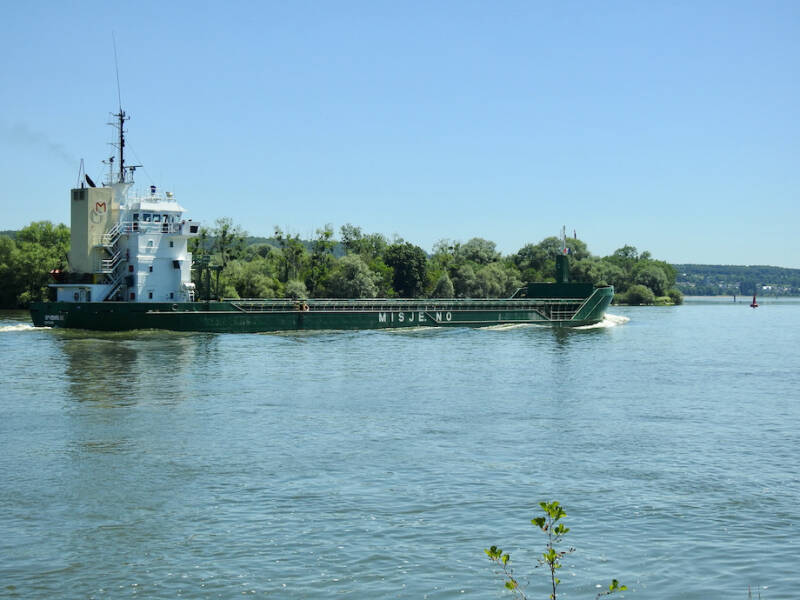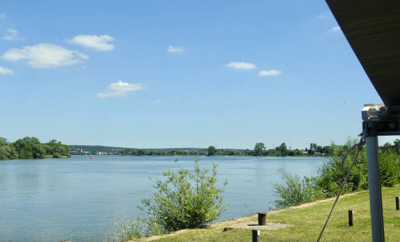 We staan op een plek met een erg mooi uitzicht over de Seine naar beide kanten. De Seine is hier een getijdenrivier, ’s morgens vroeg laag water, rond het middaguur stroomt het water dan weer de andere kant op en om een uur of 6 hoog water. Vervolgens herhaalt dit verschijnsel zich. En omdat het nog warmer gaat worden dan de 28º van vandaag blijven we hier tot donderdag staan. Misschien ook beter voor de rug om die nog even wat rust te gunnen tot het effect van de zalf merkbaar is.
