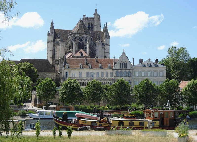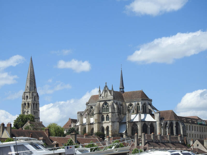 Het was 3 kwartier rijden naar Auxerre waar we op de gratis parking aan de Yonne staan bij de jachthaven. We hebben hier meerdere malen gestaan, altijd op de terugweg vanuit Marokko en/of Spanje. Een rustige plek nu het kermisje er niet is vanwege COVID en via een voetbrug over de rivier met het centrum verbonden. We komen niet voor de stad, die de moeite waard is, maar om een fietsenmaker te vinden voor de vervanging van de achterband van Everdien’s fiets. Bij de 2e zaak was het raak, na enig overleg wilden ze de band wel vervangen, we konden de fiets ophalen om 18.00 uur.