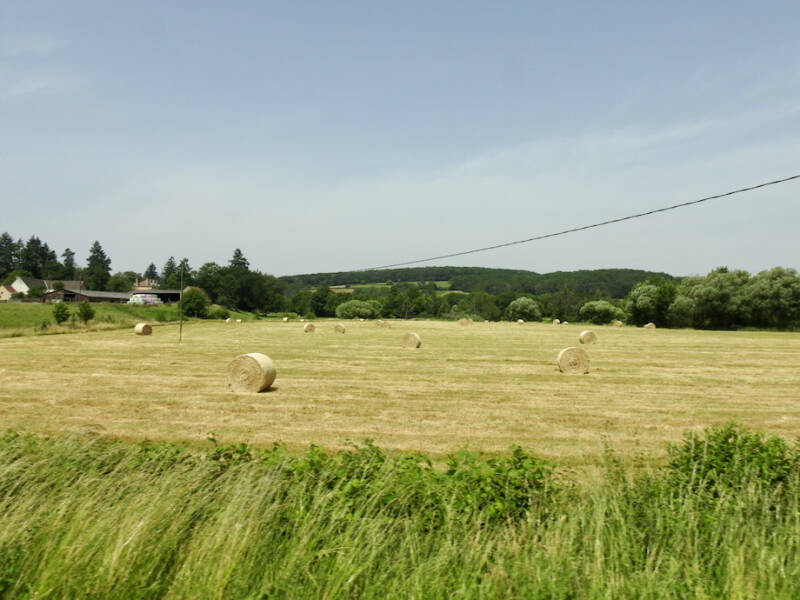 We zijn vanmorgen om 9.30 uur vertrokken en hebben eerst 45 km tolweg gereden om daarna via de RN en D wegen het nationaal park van de Morvan te doorkruisen. Kleine wegen door een bosrijke heuvelachtige omgeving waar gehooid werd en we veel runderen in de wei zagen van het Charolais ras. De runderen hebben een roomkleurige vacht, zijn zeer robuust met korte grove poten en hebben een rustig karakter zoals beweerd wordt. Het ras werd vroeger voornamelijk ingezet in de landbouw als trekdier voor het ploegen van de akkers , maar vanaf midden vorige eeuw wordt het nog alleen gefokt voor de vleesproductie.