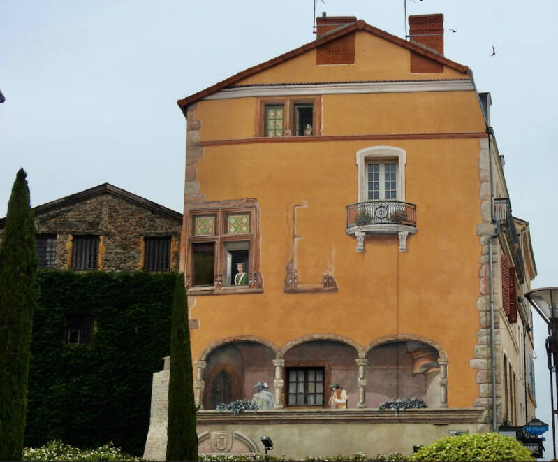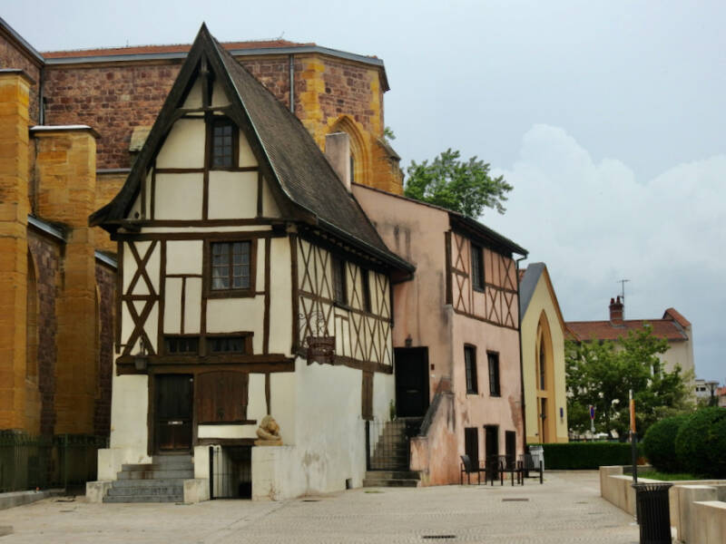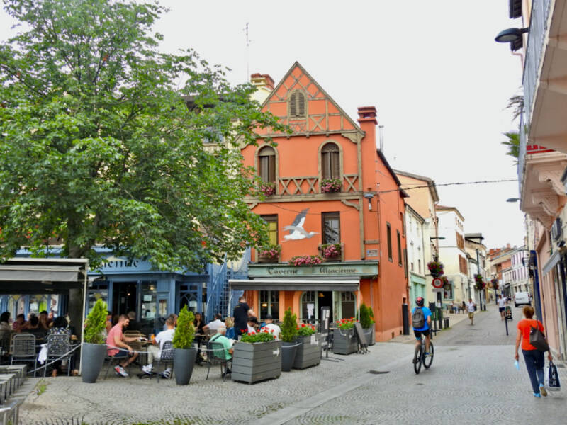 Vanmorgen was het nog droog, er waren een paar aardig uitziende terrassen in Roanne. Regen dreigde, wij hebben er niet gezeten.