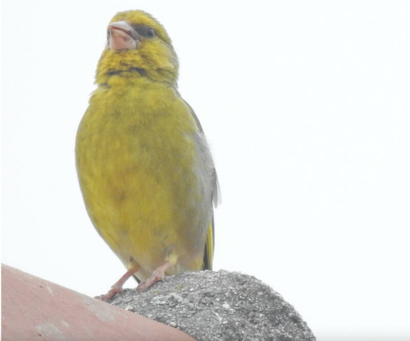 Op de nok van het dak van een huis naast de cp zat een groenling te zingen.