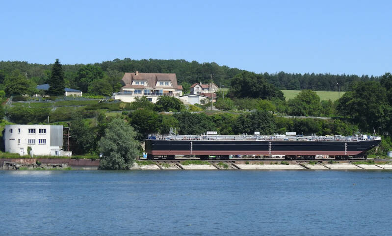 Een kleine scheepswerf hier langs de Seine.Het huis daarboven, formaat sanatorium volgens Everdien, zal wel van de eigenaar zijn.