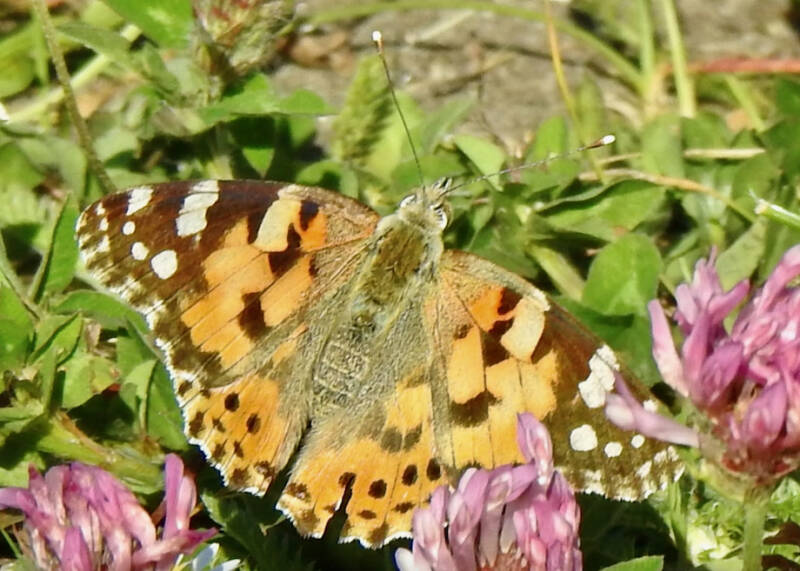 Veel distelvlinders hier , een trekvlinder we kennen vanuit Marokko. Hier zitten ze op de rode klaver.