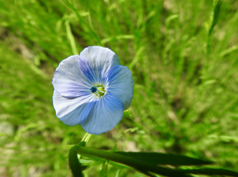 Tijdens de fietstocht zagen we een veld met vlas , jammer genoeg nog slechts een enkel bloempje in bloei.