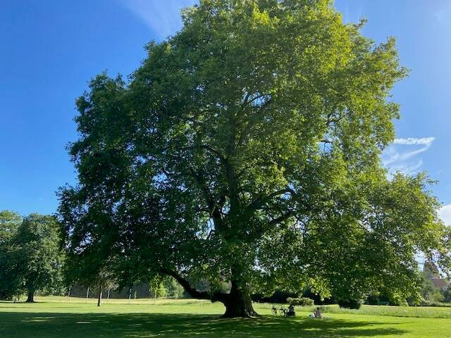 Er is hier bij Steinfurt een prachtig park die ooit door een graaf is aangelegd, het park Bagno, in de 18e eeuw in Franse stijl . We hebben een wandeling door het park gemaakt, het was wel warm , ruim 32º maar we liepen gelukkig veel onder bomen. Via een voorstadje van Steinfurt kwamen we weer in het centrum waar we op een terras in de schaduw wat drankjes hebben gedronken en een Turkse pizza en frites hebben gegeten. We moesten €24,40 betalen , een bedrag waarvan we zeiden het lijkt Spanje wel. Naast het eten hadden we 3x 0,5 l Hefe Weizen bier gedronken en 1 glas wijn van 0,2 l. Daar betaal je in Nederland toch heel wat meer voor. En nu, om 20.30 uur is het nog 30º.