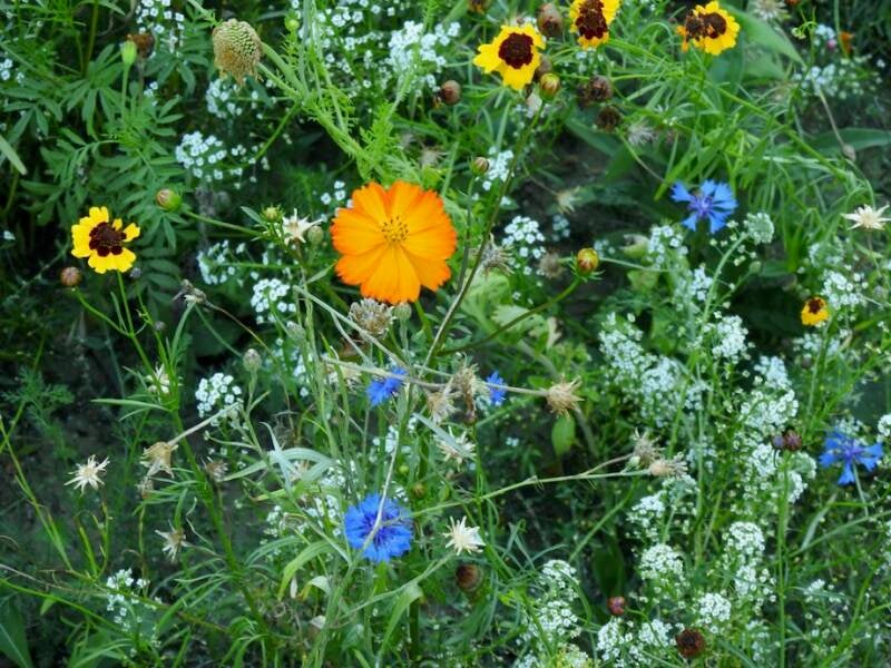 Rondom de Aasee zijn wilde bloemen in perkjes gezaaid. De meeste bloemen zijn verdord, dit perkje krijgt ws water van bewoners.