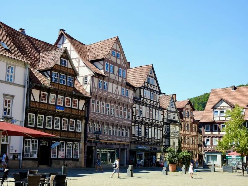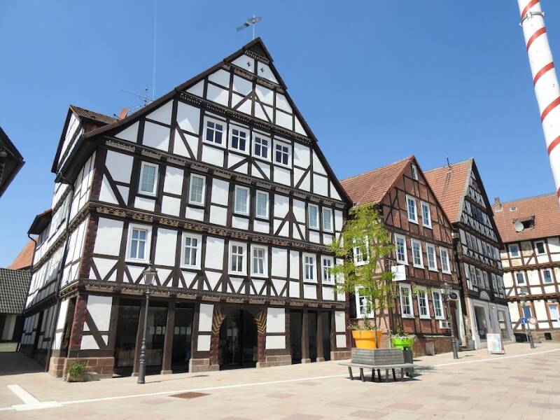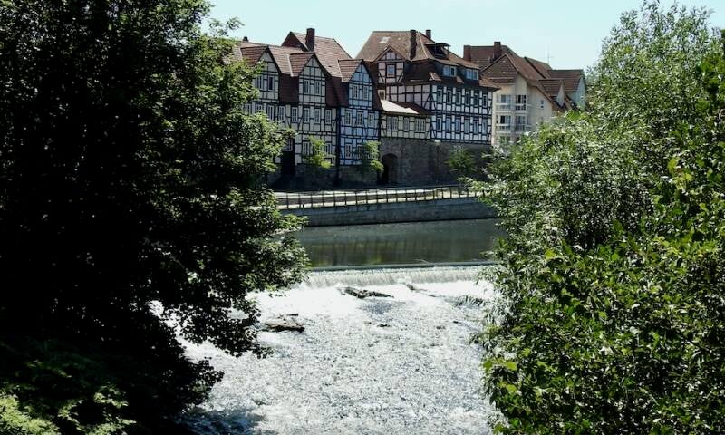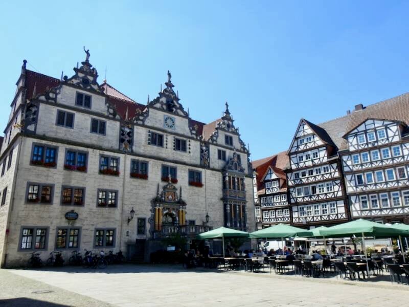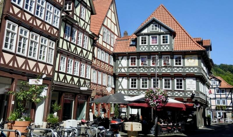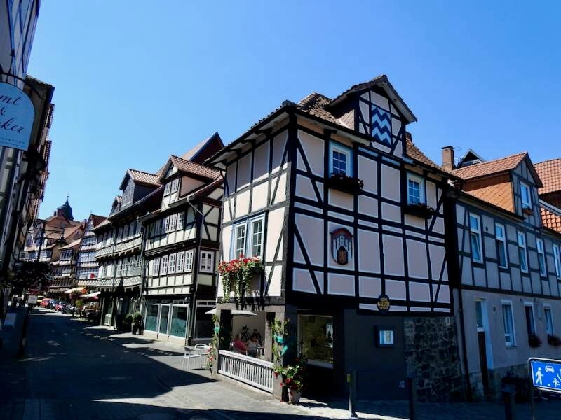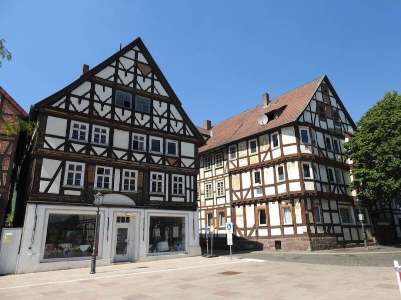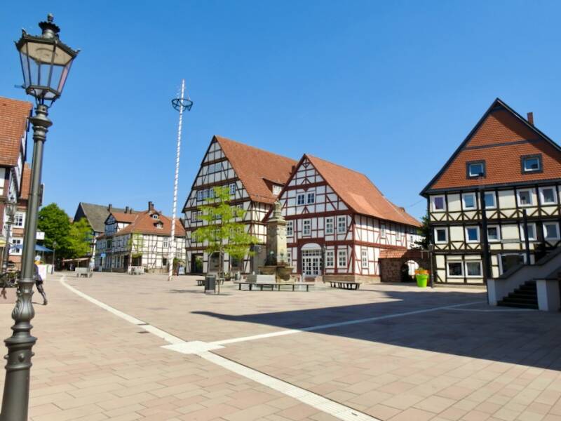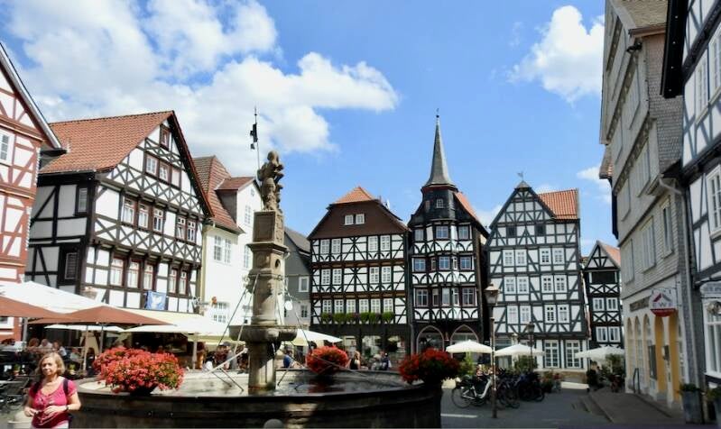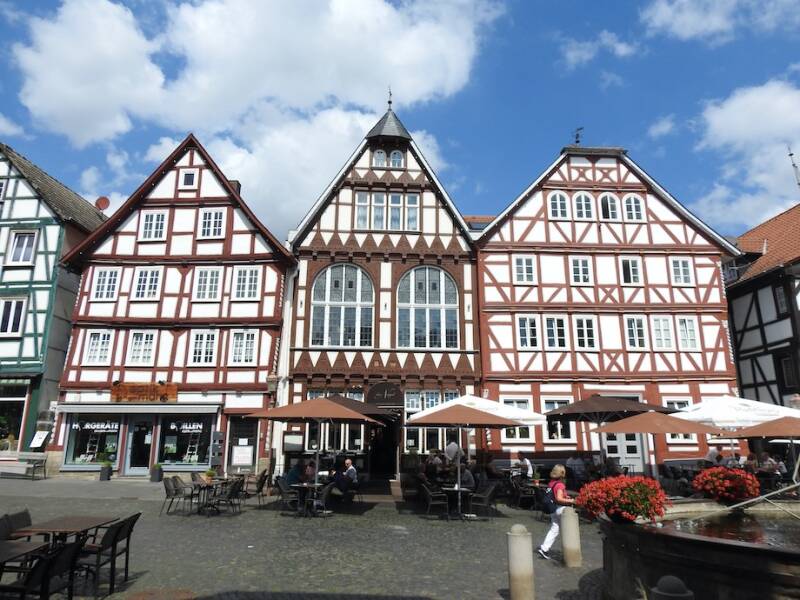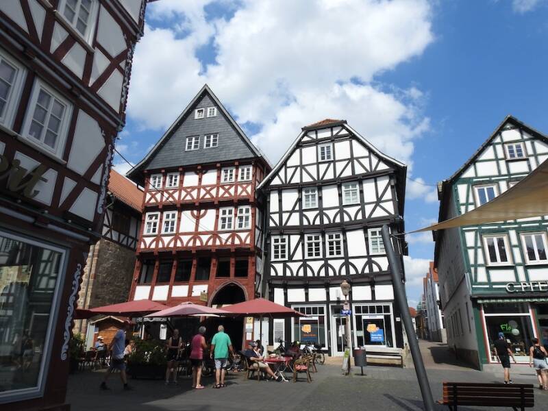 Want mooi is het zeker met zijn fraaie middeleeuwse vakwerkhuizen. Bovendien ligt het op de route naar de rivier de Weser waar we morgen heen rijden.