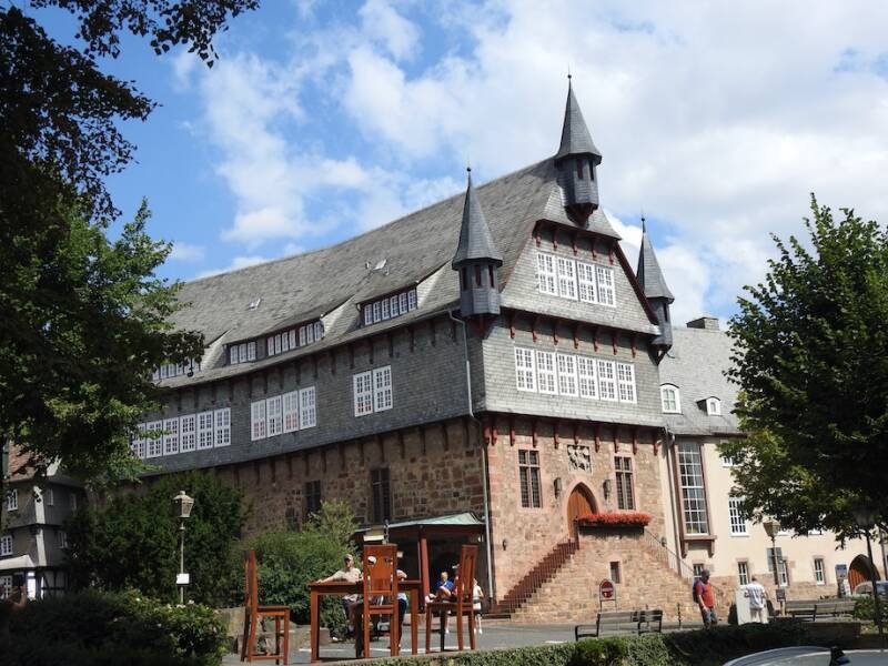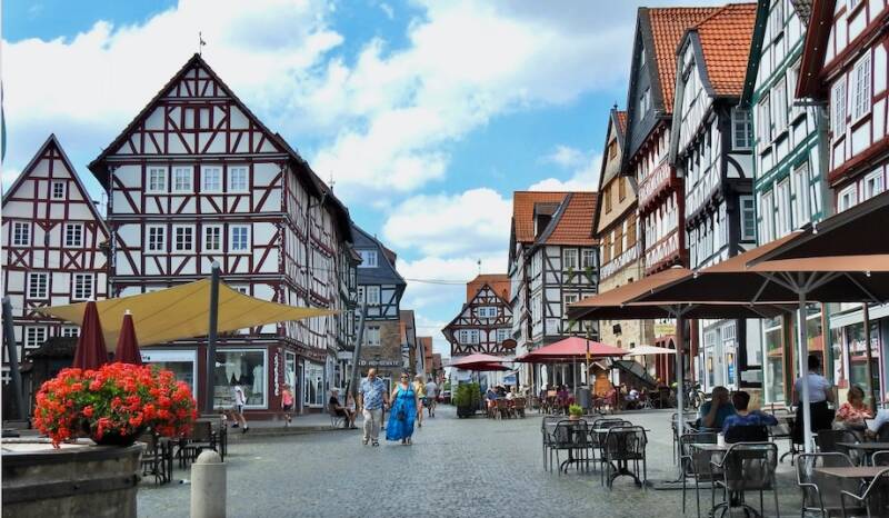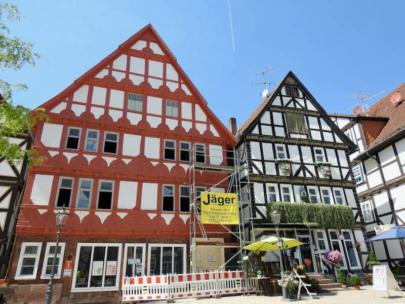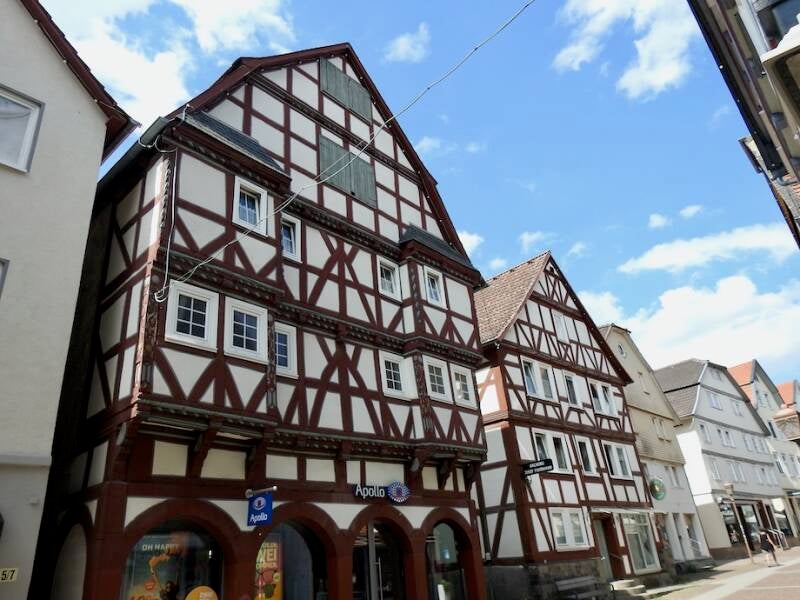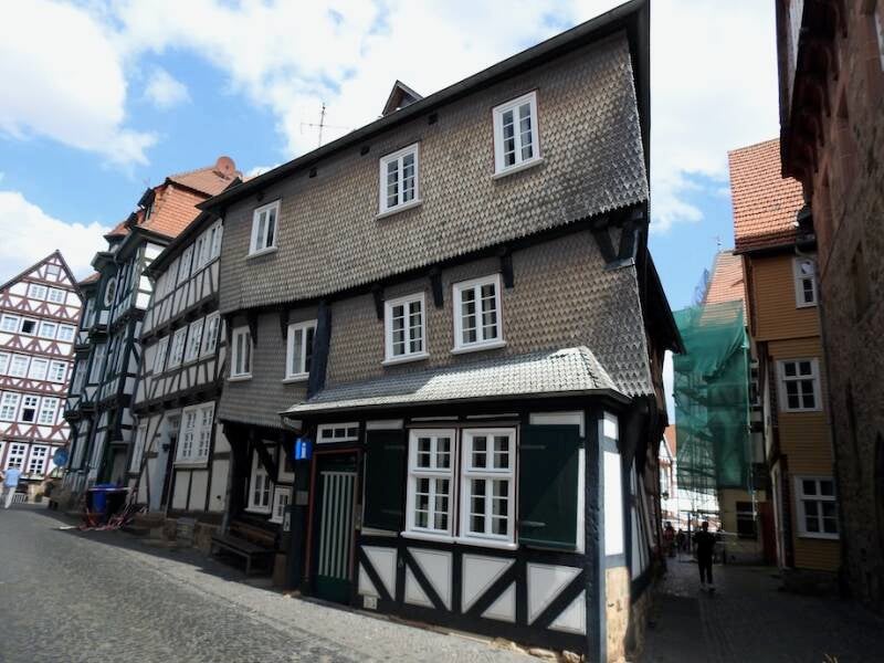 Ook is in Fritzlar een fraai marktplein met vakwerkhuizen. Veel huizen zijn hier van ‘plakjes’ hout die dakpansgewijs langs de gevels liggen.