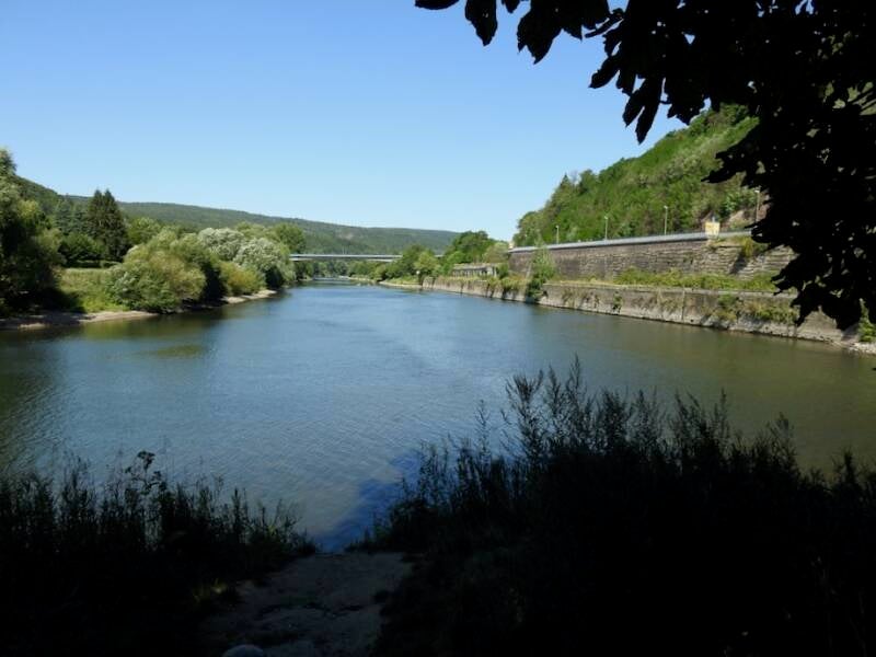 Van links komt de rivier de Fulda, vanaf rechts stroomt de rivier de Werra, samen gaan ze verder al de Weser.