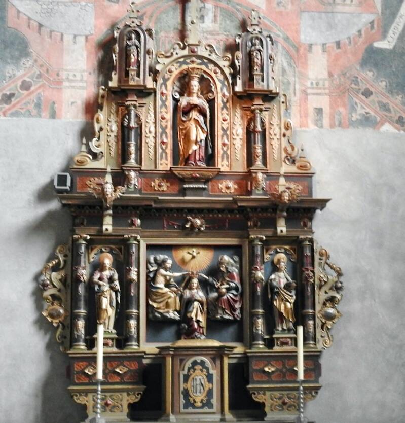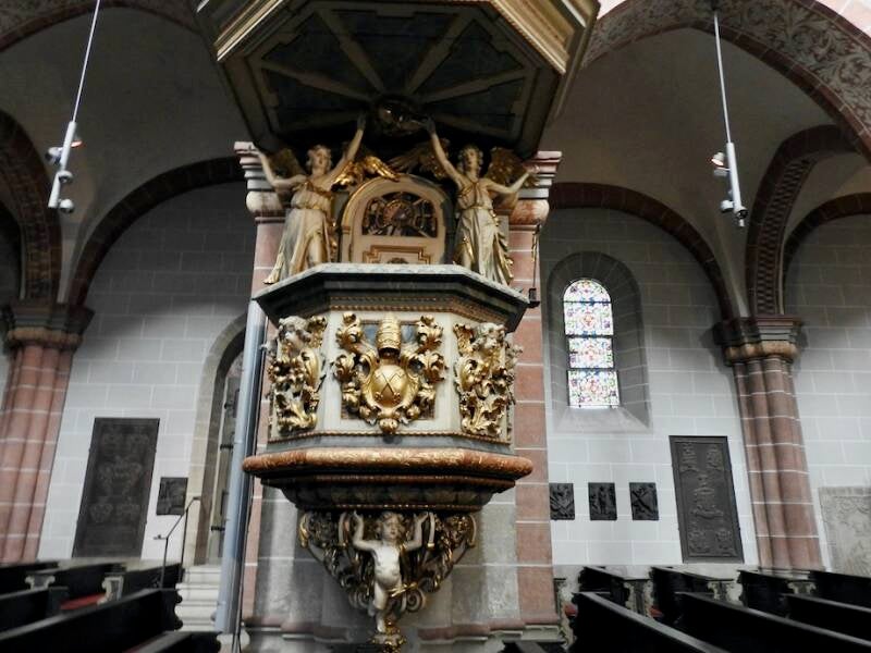 We hadden gisteren het plan nog om vanochtend te gaan fietsen, door de regenbuien kwam daar niets van terecht. De dom hadden we nog niet bezichtigd en we hadden gelezen dat de kerk rijk is aan historische schatten. Het interieur viel ons tegen, vermoedelijk zijn de schatten te bezichtigen in het dom-museum maar die bleek op maandag gesloten. Jammer dan, maar we hadden wel weer onze dagelijkse beweging gehad door naar het stadje op de heuvel te klimmen.