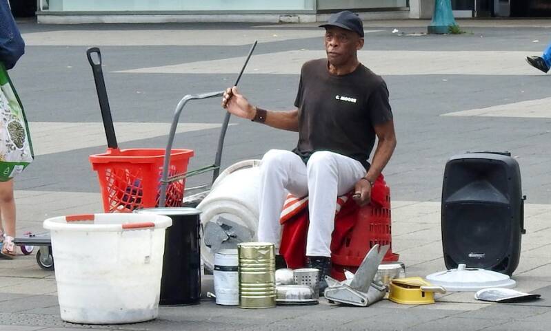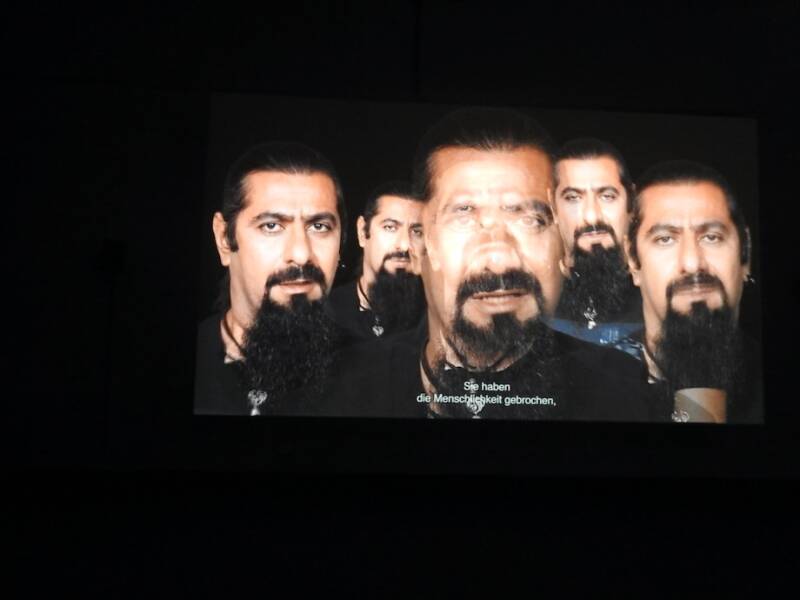 We zijn naar wat andere plekken gegaan vandaag , wat verder van de Friedrichplatz waar we eerst naar WH 22 zijn gefietst. Dat is een cultureel centrum met een grote binnentin waarin een groep Vietnamese immigranten een moestuin heeft aangelegd. Maar wij kwamen voor een groep Marokkaanse kunstenaars , Le 18, we bekeken een klein filmpje over hun atelier in de medina van Marrakech. Dat bleek het begin te zijn van een reeks films die we zouden zien vandaag. In de prachtige, zeer donkere kelders van het gebouw keken we een stukje van een film van een Marokkaanse regisseuse, maar die was wat SM-achtig, dat hadden we gauw bekeken. Hup op de fiets naar een volgende locatie, het Stadtmuseum van Kassel. Daar was een aangrijpende film te zien over een Syrische vluchteling die jaren had vast gezeten op het ‘Mangus Island’ daarheen werden vluchtelingen die aankwamen in Australië naar toe gedeporteerd. Hij had zijn troost gevonden in de Hard Rock, hij trad op met een bandje.