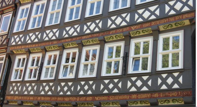 Op de foto hierboven en rechts zie je de Weserrenaissance vormen aan de vakwerkhuizen