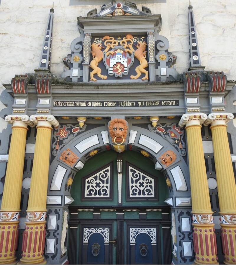 Even over de Weserrenaissance bouwkunst : de renaissance ging vooraf aan de Barok en besloeg ruwweg de jaren 1400-1600. De Weserrenaissance ontstond zo rond 1520 toen er in dit gebied een bloeiende economie ontstond dankzij de verbouw van graan. Bouwmeesters namen impulsen over uit buurlanden en probeerden hun bouwkunst in creativiteit te overtreffen. Zo hebben ze prachtige kastelen gebouwd en hier in Hann. Münden het Rathaus. Je ziet het ook hier aan sommige vakwerkhuizen, er zijn soms mooie vormen aan de gevel die tot de Weserenaissance behoren.