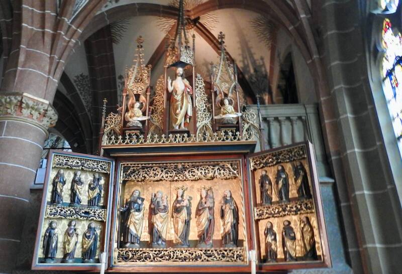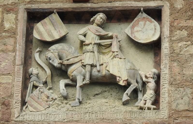 Aan het oude Rathaus, benedenstuk 12e eeuw, er in de 15e eeuw er een stuk bovenop gebouwd. Hier zit een reliëf van St Maarten die een deel van zijn mantel aan een arme bedelaar geeft,