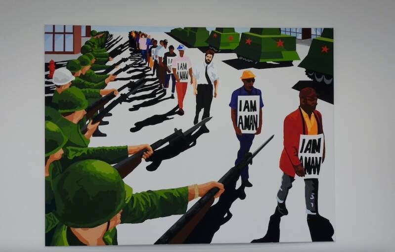 Ons viel op de nadruk op emancipatie van minderheden, naast onderdrukking, uitgebeeld in verschillende kunstuitingen. Vooral ook in audiovisuele beelden in verschillende ruimtes die je voor kortere of langere tijd kon bekijken. Bv. over Suriname, vrouwen emancipatie in Algerije en gezongen verhalen uit Koerdistan, een kunstenaarsgroep uit Oeganda. We hebben veel bekeken rondom de Friedrichsplatz omdat daar een concentratie is van tentoonstellingen in verschillende gebouwen. Veel te veel indrukken doe je zo op en vandaar dat het soms als een allegaartje over kwam maar er zaten genoeg aansprekende dingen bij, soms konden we de betekenis van iets niet doorgronden.