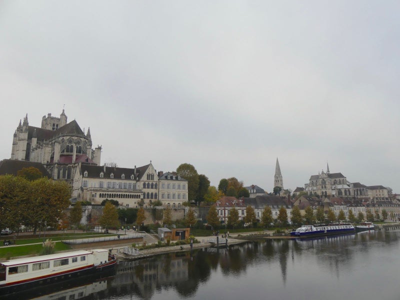 Auxerre aan de Yonne met links de kathedraal en rechts de abdij Saint Germain
