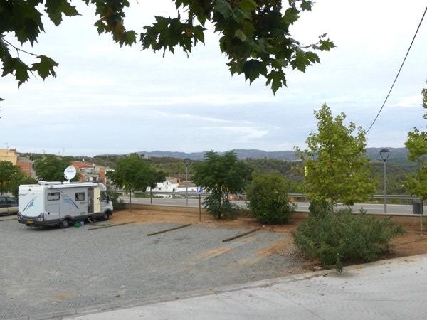 De camperplaats in Valderrobres ligt midden in de stad aan de rivier de Matarraña met zicht op het historische centrum. Het ligt op een mix-parking dus er staan ook personenauto’s en een touringcar